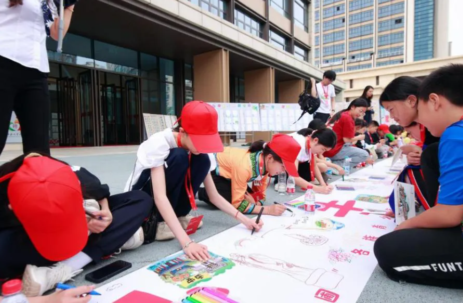 随后,在手牵手绘百米长卷活动中,布达拉宫、新疆葡萄、西安城墙……孩子们用画笔绘出心中灿烂的中华优秀传统文化。“五十六个星座五十六支花,五十六族兄弟姐妹是一家……”报告厅内,beat365手机版官网附属小学师生开展文艺汇演,与交流成长营师生同唱《爱我中华》,歌声荡漾,大家的心也更紧密地连在了一起。