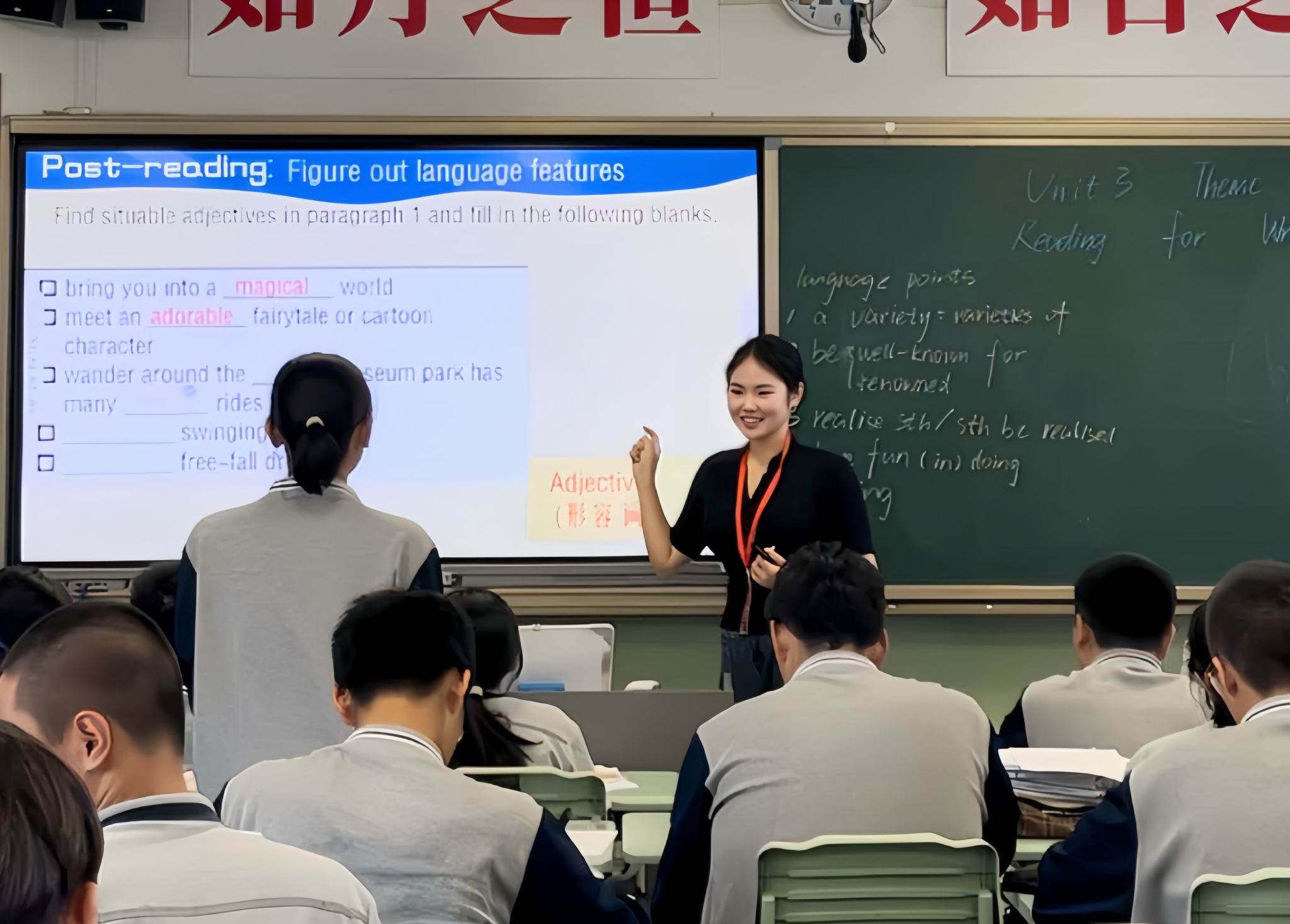 “我的第一堂课是以主题公园为内容的读写课。因为大学期间参加过‘红烛杯’师范生教育教学能力大赛,真正站上讲台的那一刻,我还是较好地hold住了场面。”谢雨欣说。以赛促学,以赛促练,曾经在一轮轮过关斩将中练就的板书、演讲、授课等技能,都成了支撑师范生站稳讲台的硬实力。