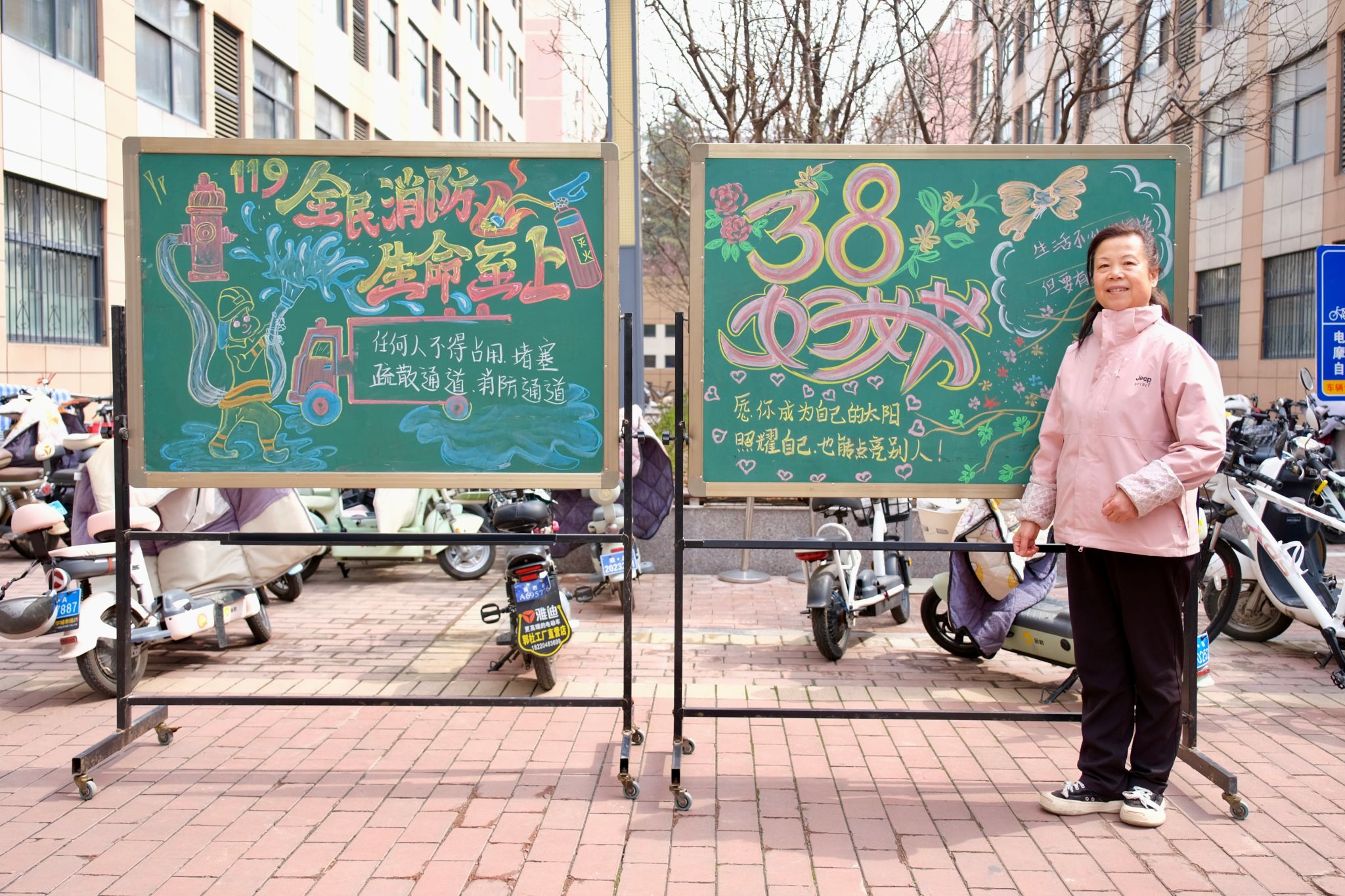 “韩阿姨,这块板报是您画的吗?太好看了!我一个师范生都画不出这么漂亮的黑板报!”三月初,学生公寓菊园门口,庆祝“三八妇女节”的板报刚刚亮相,便引来学生们“围观”。画完最后一笔,韩苏苗拍拍袖口的粉笔灰,微笑着点点头,眼里满是欣慰。