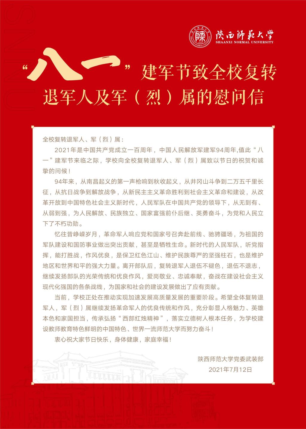 “八一”建军节致全校复转退军人及 军(烈)属的慰问信