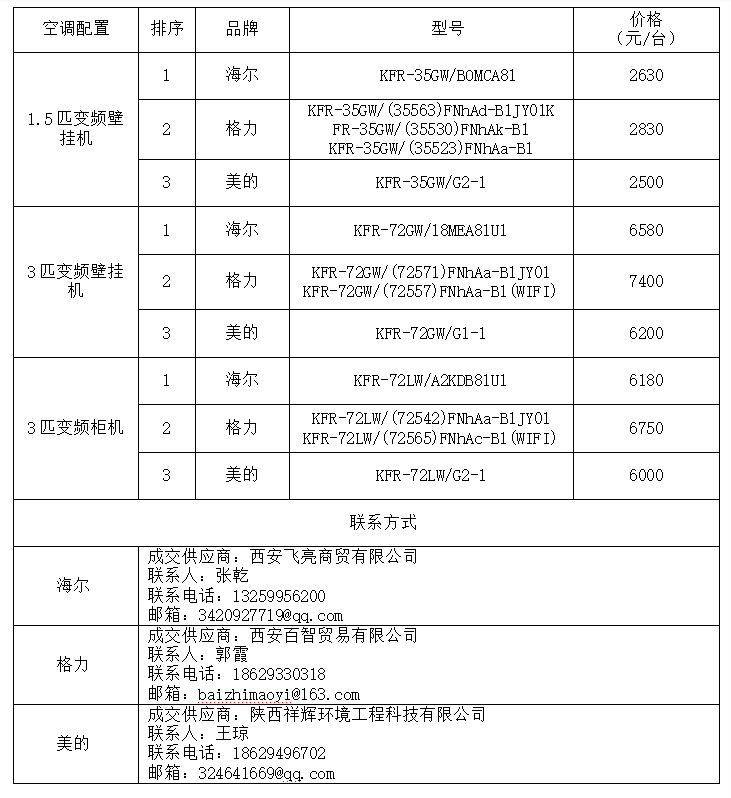 为进一步提高学校采购效率,更好地发挥采购规模效益,采购招标管理办公室(以下简称“采招办”)组织了学校2023-2024年度空调机快速采购。根据采购文件要求,采招办现以通知的形式对成交空调机的配置、价格、配件及服务、成交供应商等信息进行公开,并就2023-2024年度学校空调采购的有关要求通知如下: