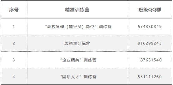 拟参加培训的学生请扫描二维码选择训练营,填写个人信息进行报名。报名截至时间为开班前两个工作日。报名成功后,请全体学员及时加入相应训练营交流QQ群。