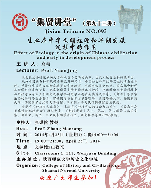讲座题目:集贤讲堂:生业在中华文明起源和早期发展过程中的作用