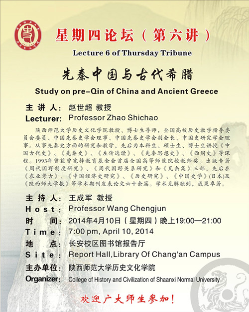 讲座题目:先秦中国与古代希腊