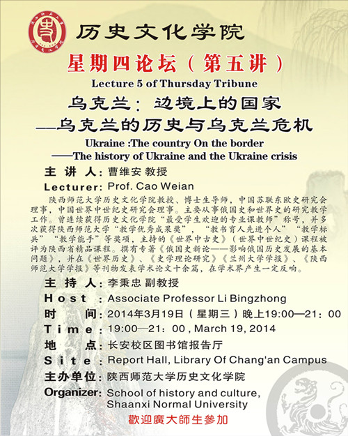讲座题目:乌克兰:边境上的国家——乌克兰的历史与乌克兰危机