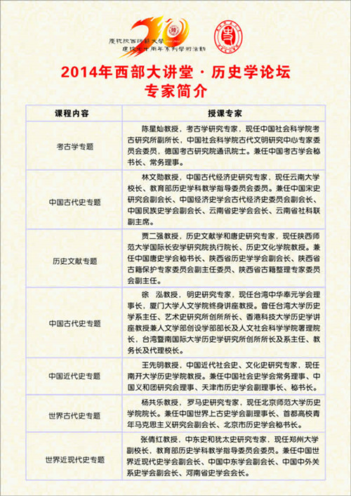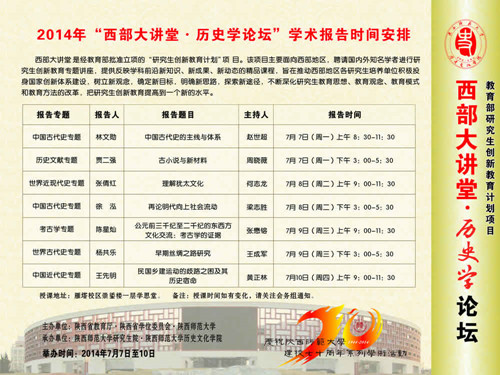 活动类别:西部大讲堂历史学论坛学术报告安排