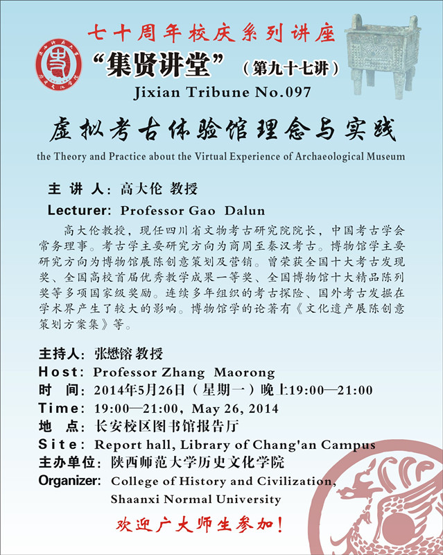讲座题目:七十周年校庆之集贤讲堂:虚拟考古体验馆理念与实践