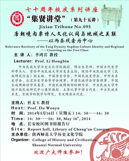 讲座题目:校庆七十周年系列之集贤讲堂:唐朝境内粟特人文化认同与地域之关联 ——以两条线索为中心