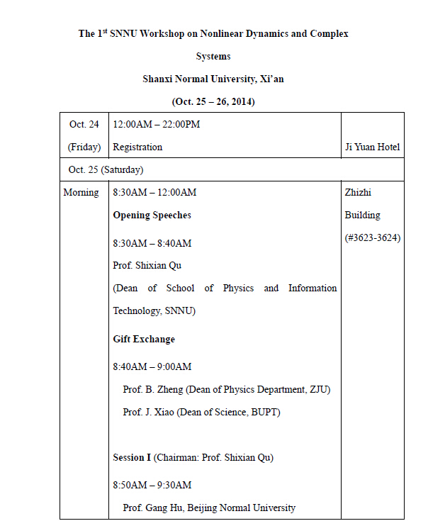 活动类别:2014年beat365手机版官网复杂性科学交叉学科研讨会