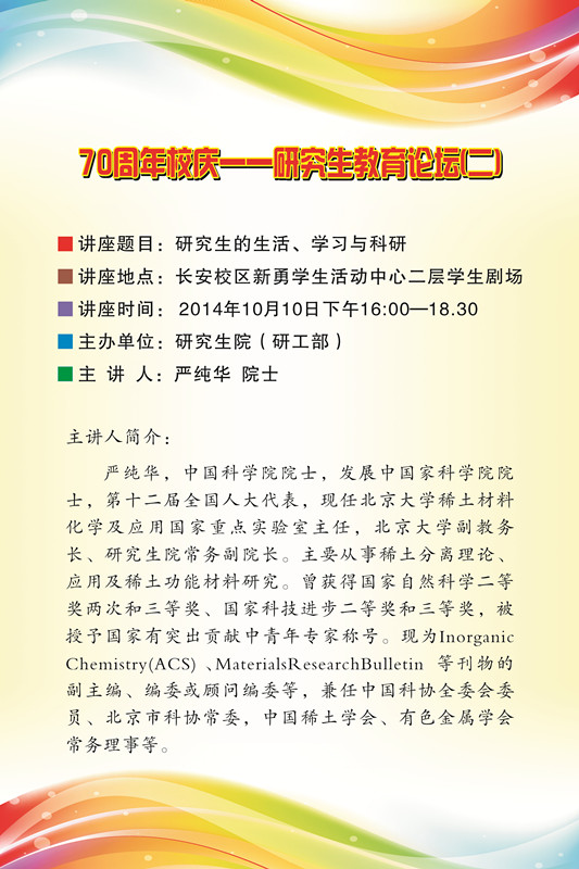 讲座题目:70周年校庆——研究生教育论坛(二)