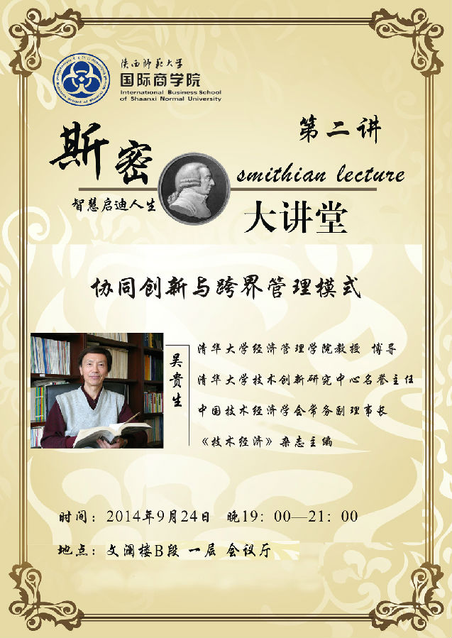 讲座题目:校庆70周年国际商学院斯密大讲堂:协同创新与跨界管理模式