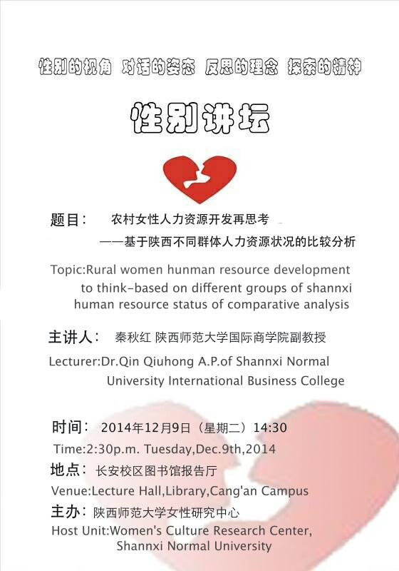 讲座题目:农村女性人力资源开发再思考----基于陕西不同群体人力资源状况的比较分析