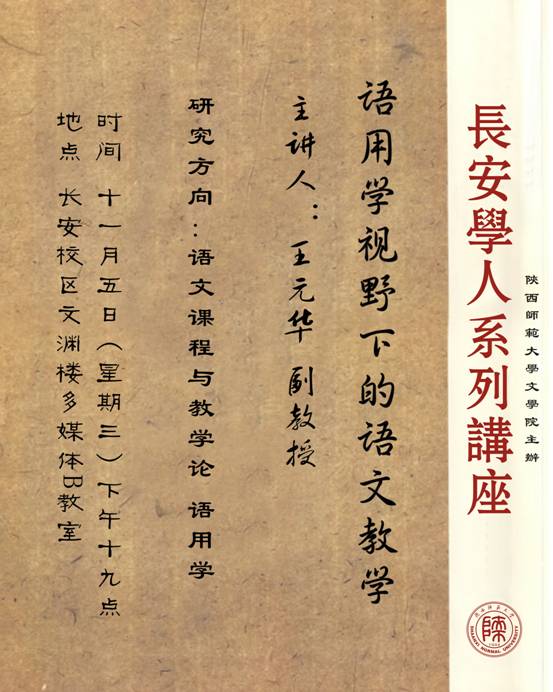 讲座题目:长安学人系列讲座:语用学视野下的语文教学