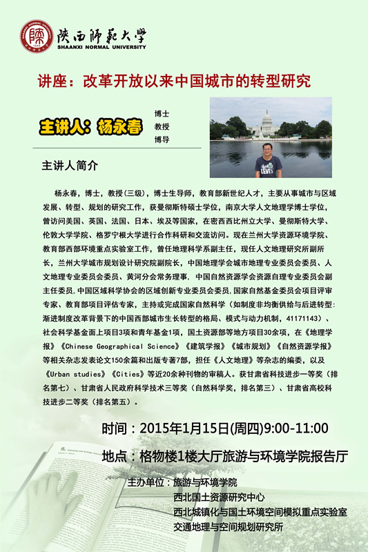 地点:长安校区 格物楼1楼大厅旅游与环境学院报告厅