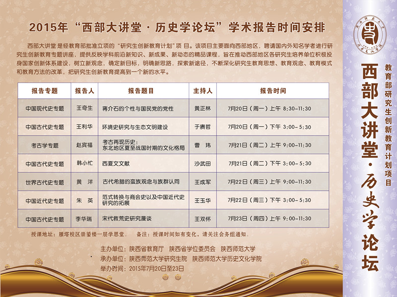 2015年“西部大讲堂•历史学论坛”学术报告