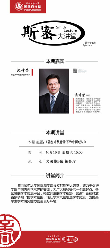 讲座题目:国际商学院斯密大讲堂第十四讲:转型升级背景下的中国经济