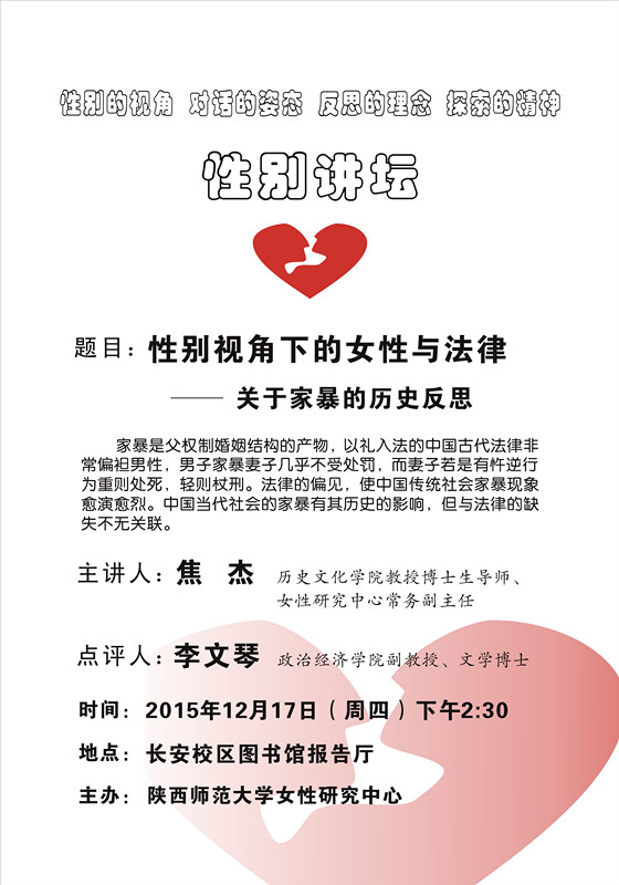 讲座题目:性别视角下的女性与法律——关于家暴的历史反思