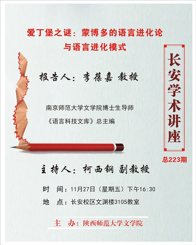 讲座题目:爱丁堡之谜:蒙博多的语言进化论与语言进化模式
