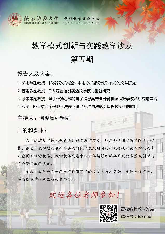 活动类别:教学模式创新与实践教学沙龙第五期:实验、实践性教学