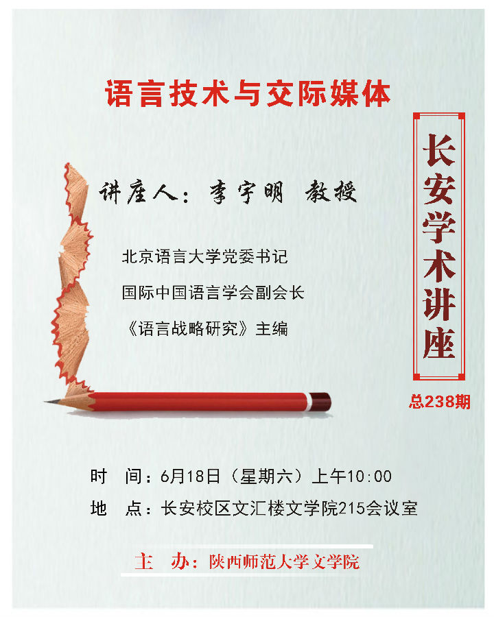 讲座题目:长安学术讲座第238期:语言技术与交际媒体
