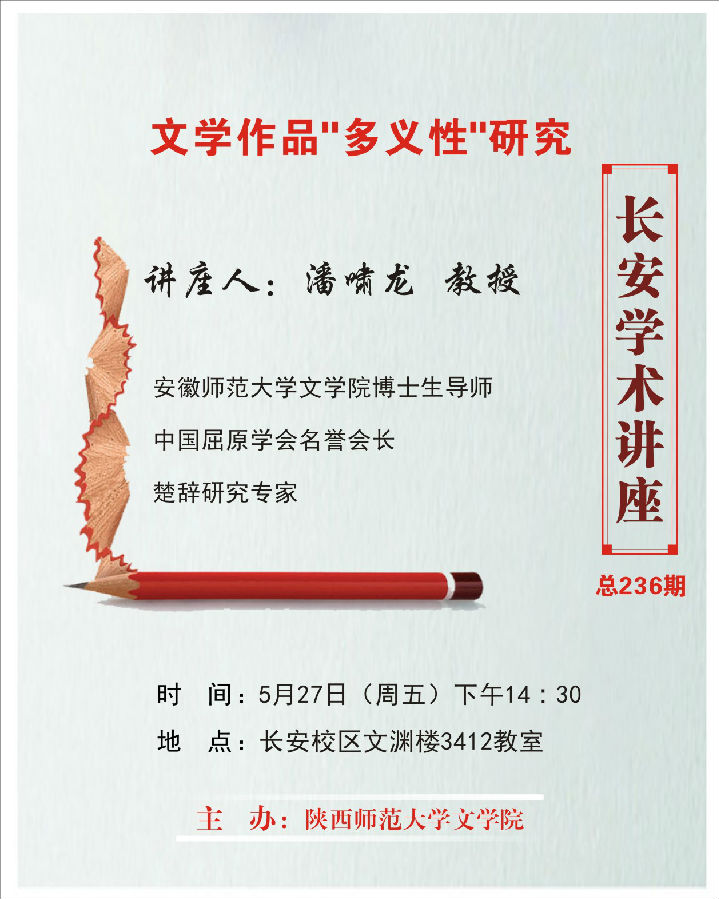 讲座题目:长安学术讲座第236期:文学作品"多义性"研究