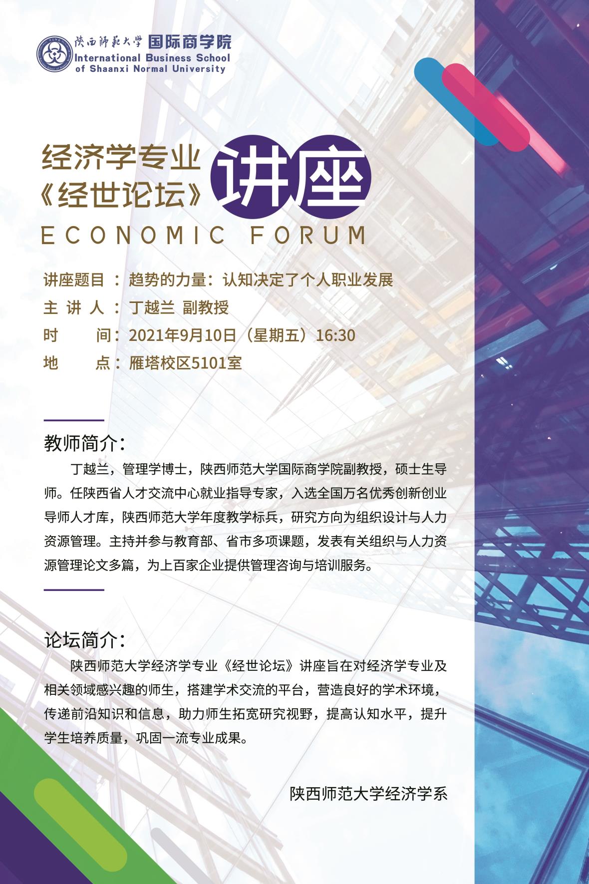 经济学专业《经世论坛》讲座——趋势的力量:认知决定了个人职业发展