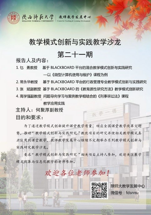 活动类别:教学模式创新与实践教学沙龙第21期:基于BB平台的混合式教学模式应用与实践