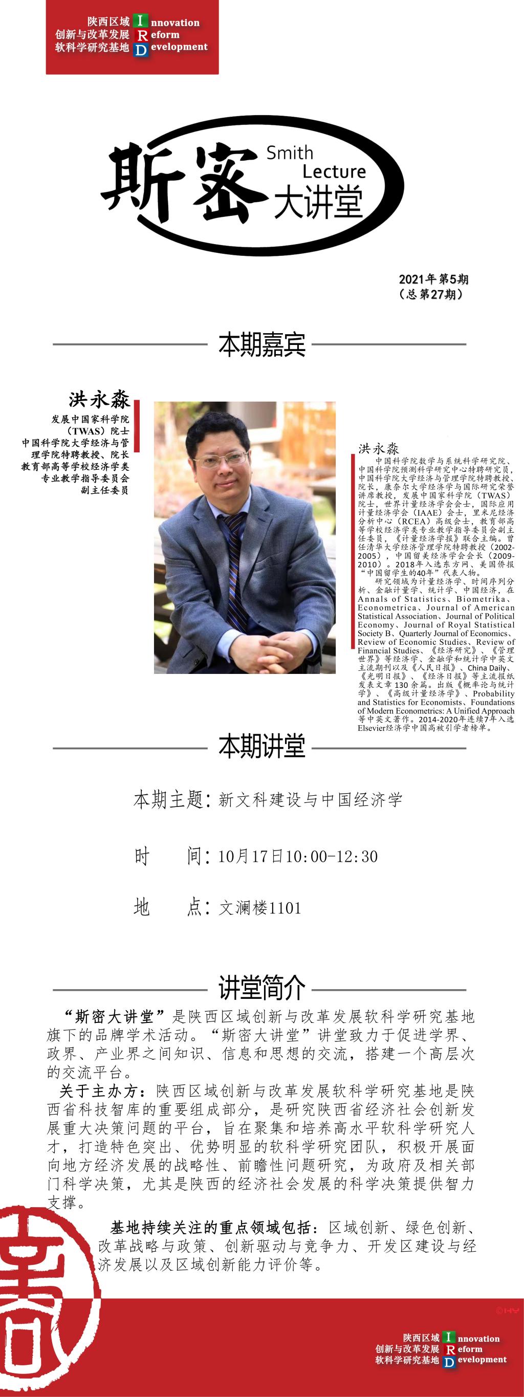 斯密大讲堂2021年第五期(总第二十七期):新文科建设与中国经济学