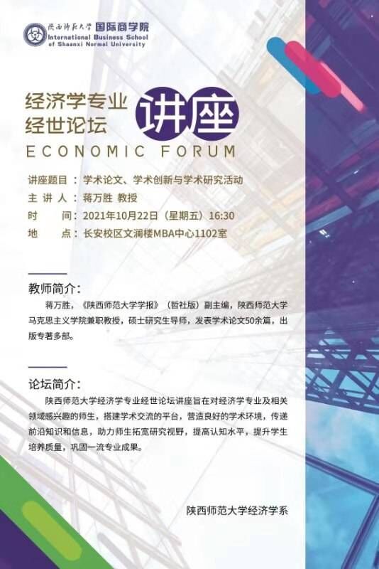 经济学专业《经世论坛》讲座:学术论文、学术创新与学术研究活动