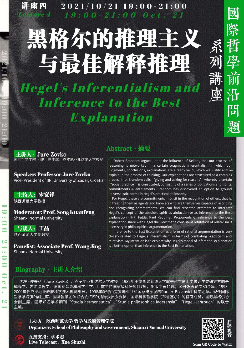 国际哲学前沿问题系列讲座“黑格尔与当代哲学”之“黑格尔的推理主义与最佳解释推理”