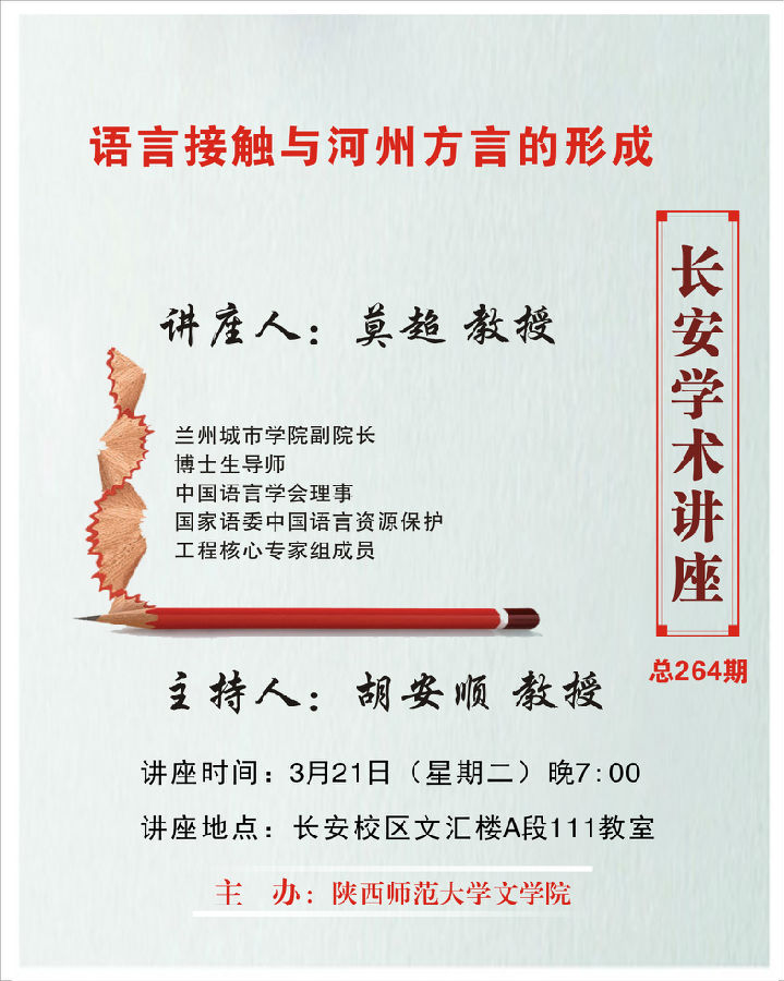 讲座题目:长安学术讲座第264期:语言接触与河州方言的形成