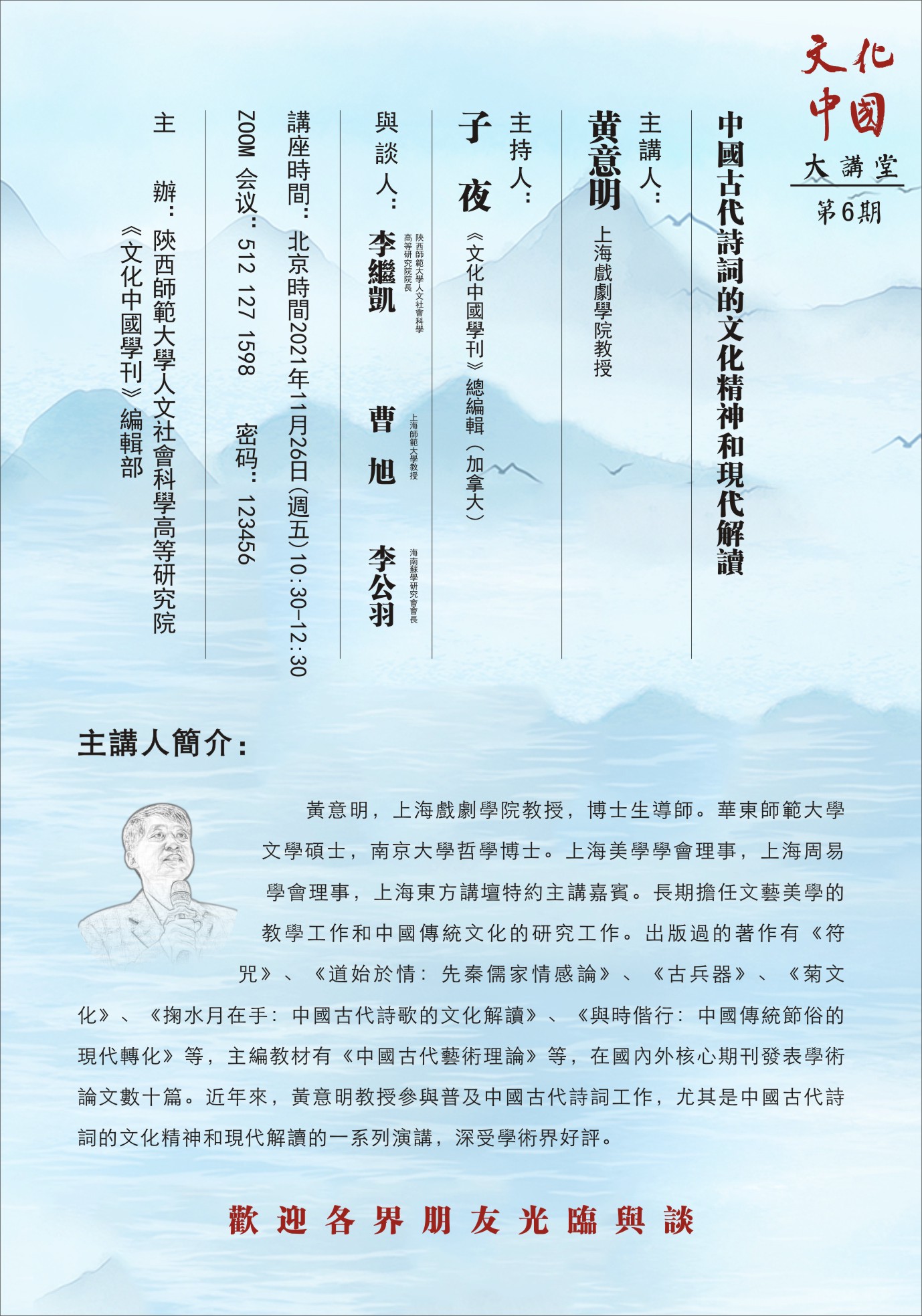 文化中国大讲堂(第6期):中国古代诗词的文化精神和现代解读