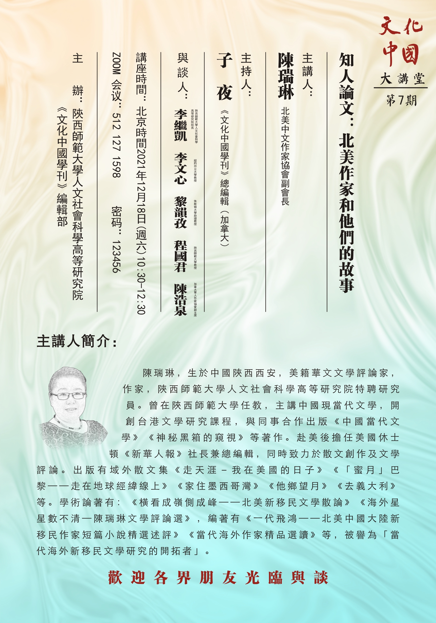 文化中国大讲堂(第7期):知人论文—北美作家和他们的故事