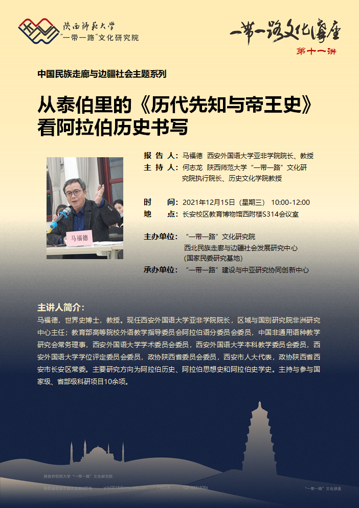 “一带一路”文化讲座(第十一讲):从泰伯里的《历代先知与帝王史》看阿拉伯历史书写