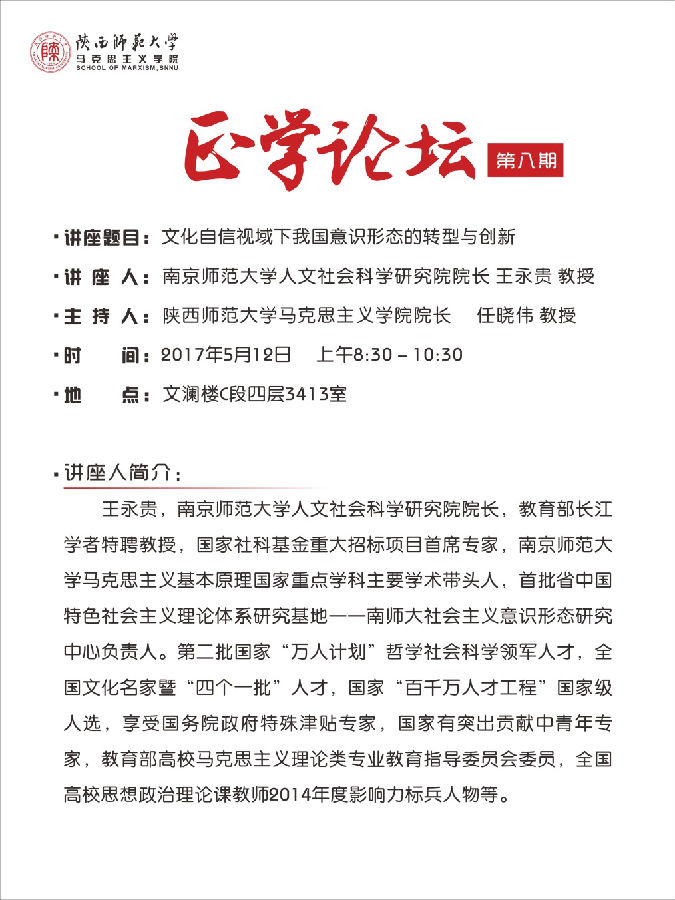 讲座题目:文化自信视域下我国意识形态的转型与创新
