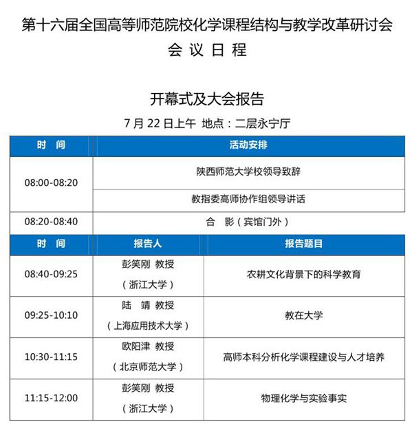 活动类别:第十六届全国高等师范院校化学课程结构与教学改革研讨会