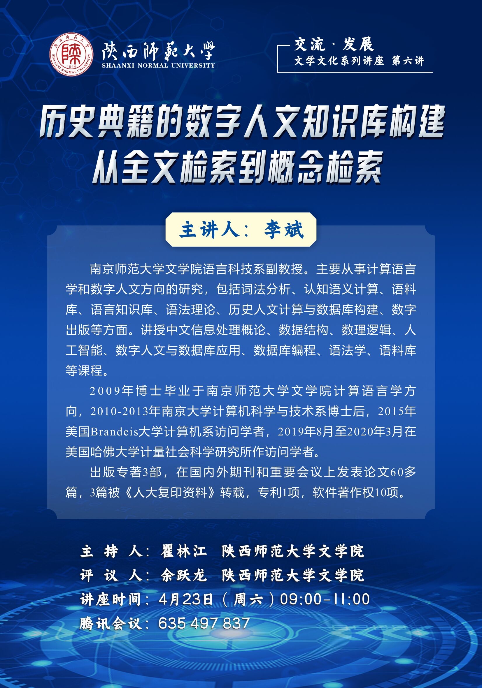 交流 发展:文学文化系列讲座(第六讲)——历史典籍的数字人文知识库构建从全文检索到概念检索