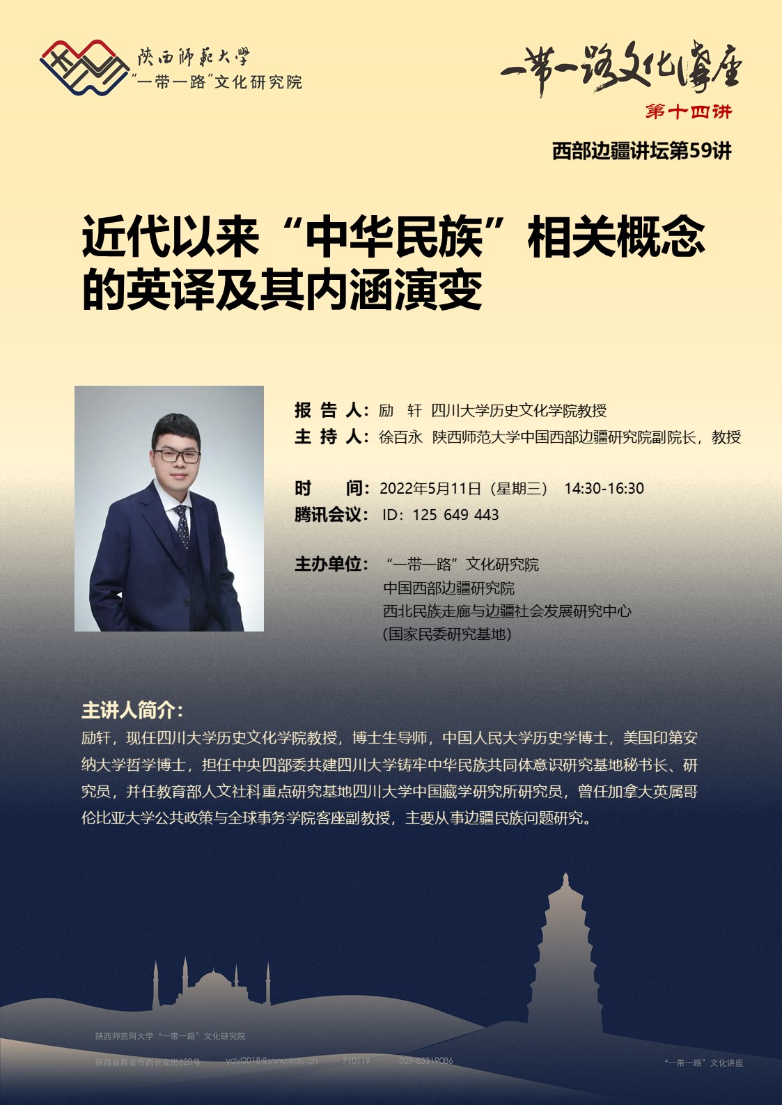 “一带一路”文化讲座(第十四讲)&西部边疆讲坛第59讲:近代以来“中华民族”相关概念的英译及其内涵演变