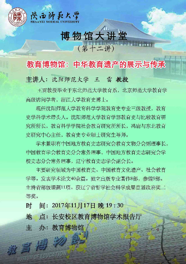 讲座题目:博物馆大讲堂:教育博物馆:中华教育遗产的展示与传承