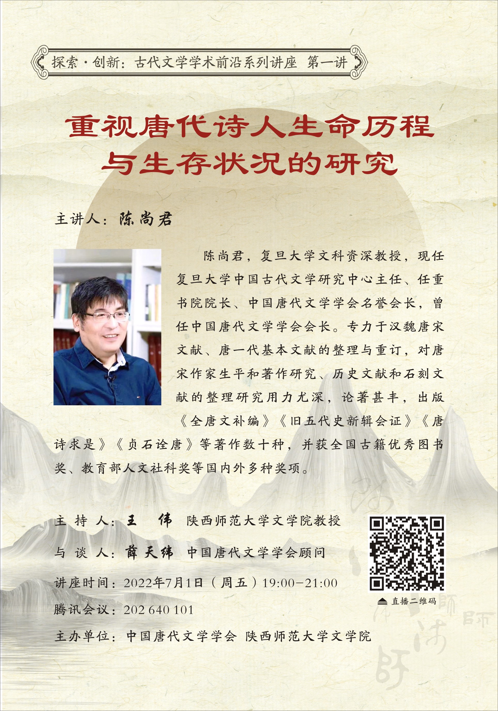 探索 创新:古代文学学术前沿系列讲座(第一讲)——重视唐代诗人生命历程与生存状况的研究