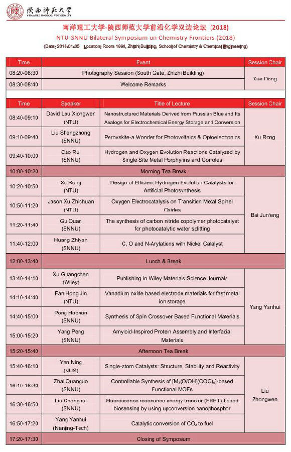 活动类别:南洋理工大学-beat365手机版官网前沿化学双边论坛 (2018)