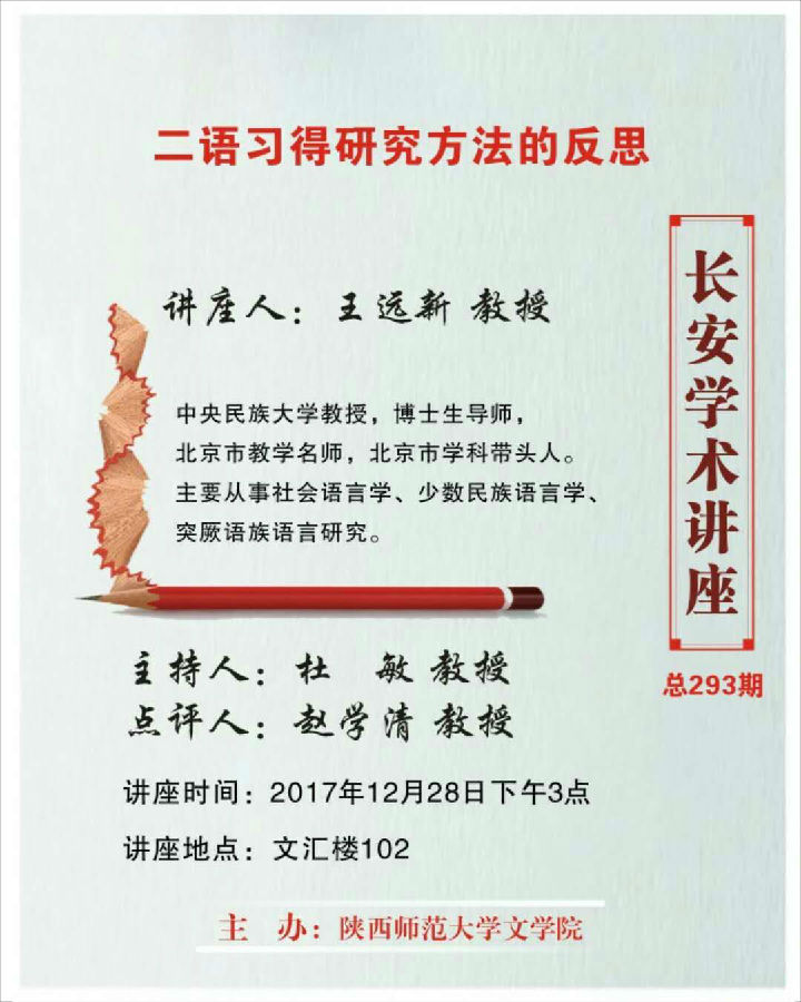 讲座题目:长安学术讲座总293期:二语习得研究方法的反思