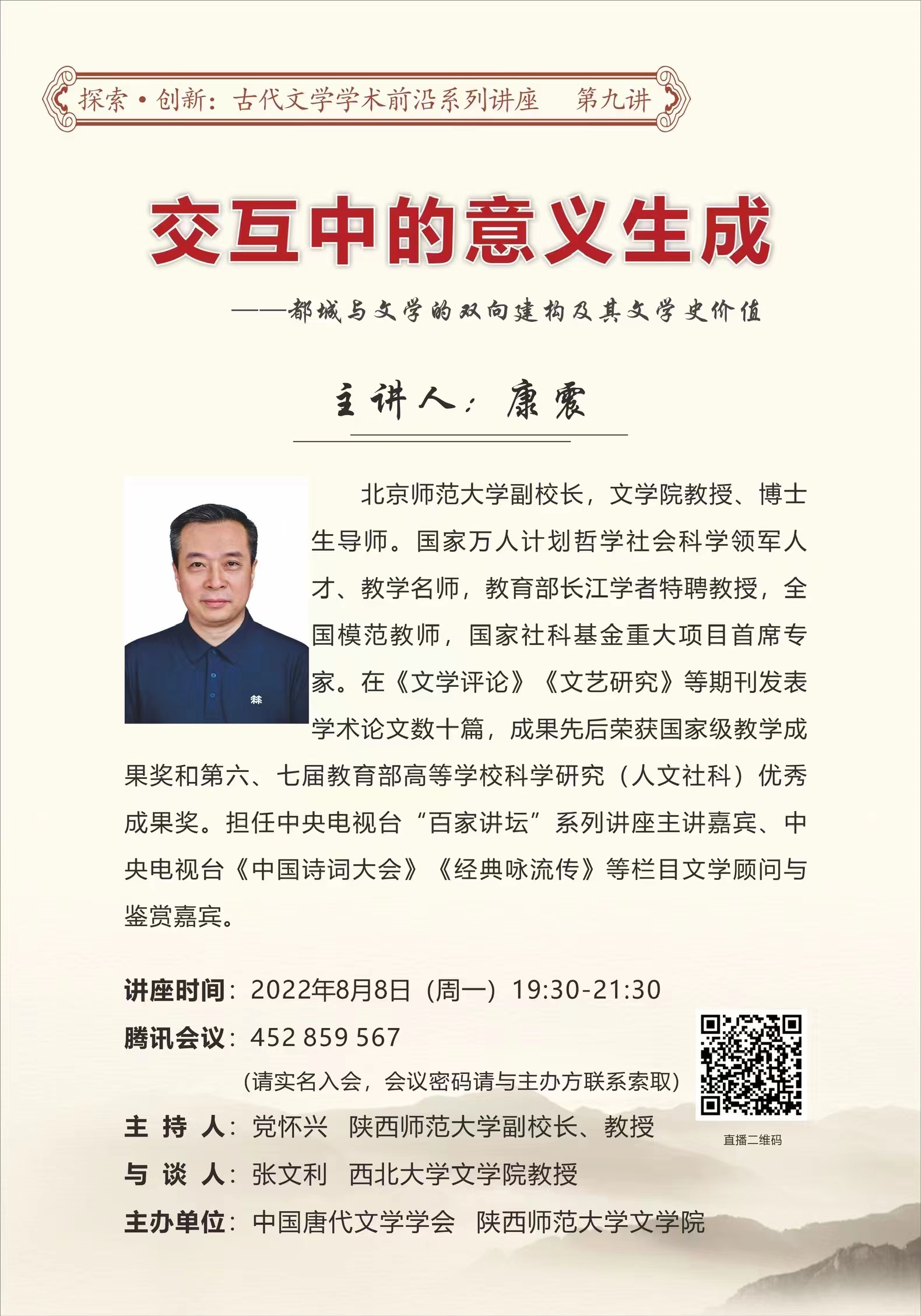 探索 创新:古代文学学术前沿系列讲座(第九讲) 交互中的意义生成——都城与文学的双向建构及其文学史价值