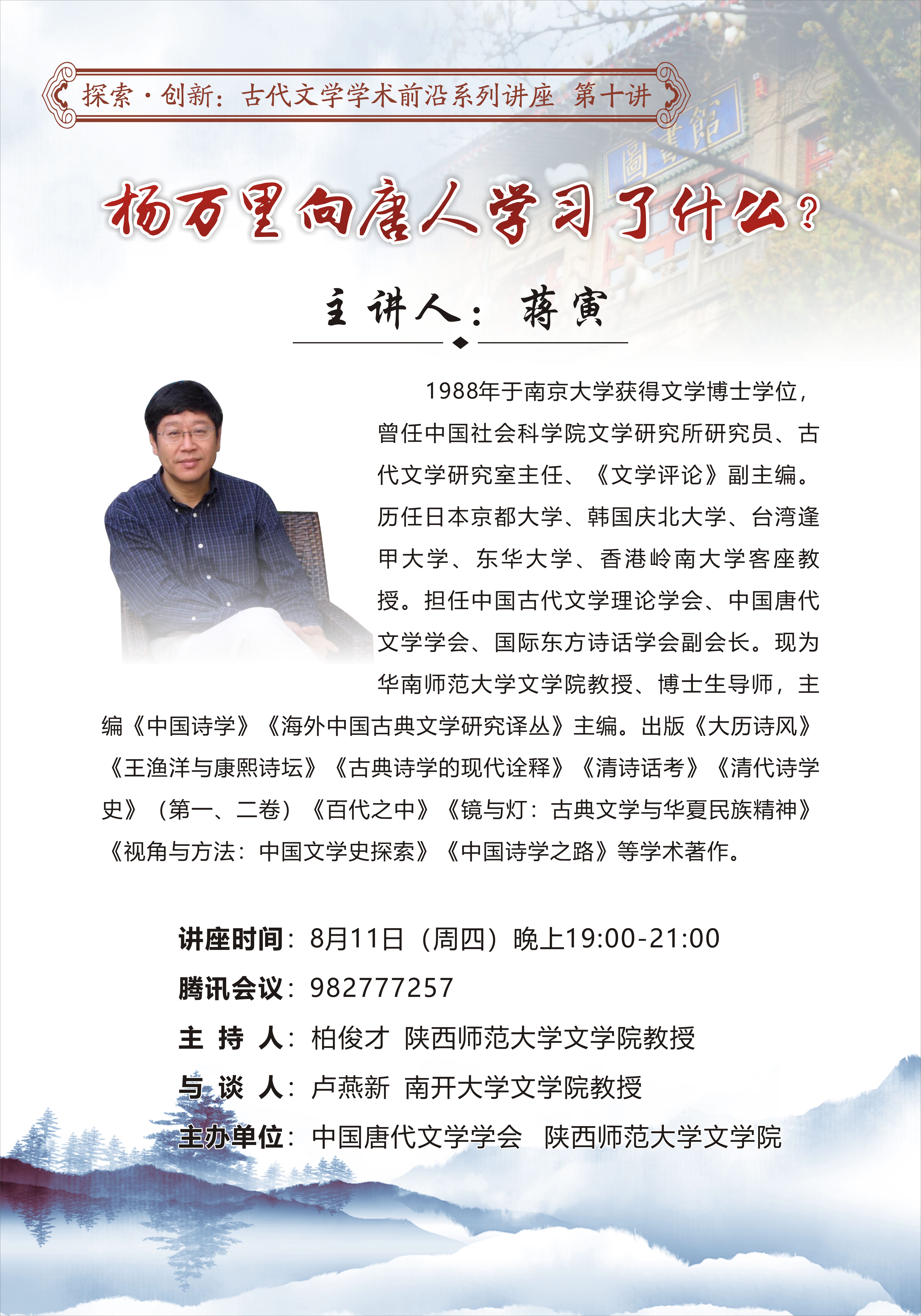 探索 创新:古代文学学术前沿系列讲座(第十讲)——杨万里向唐人学习了什么?