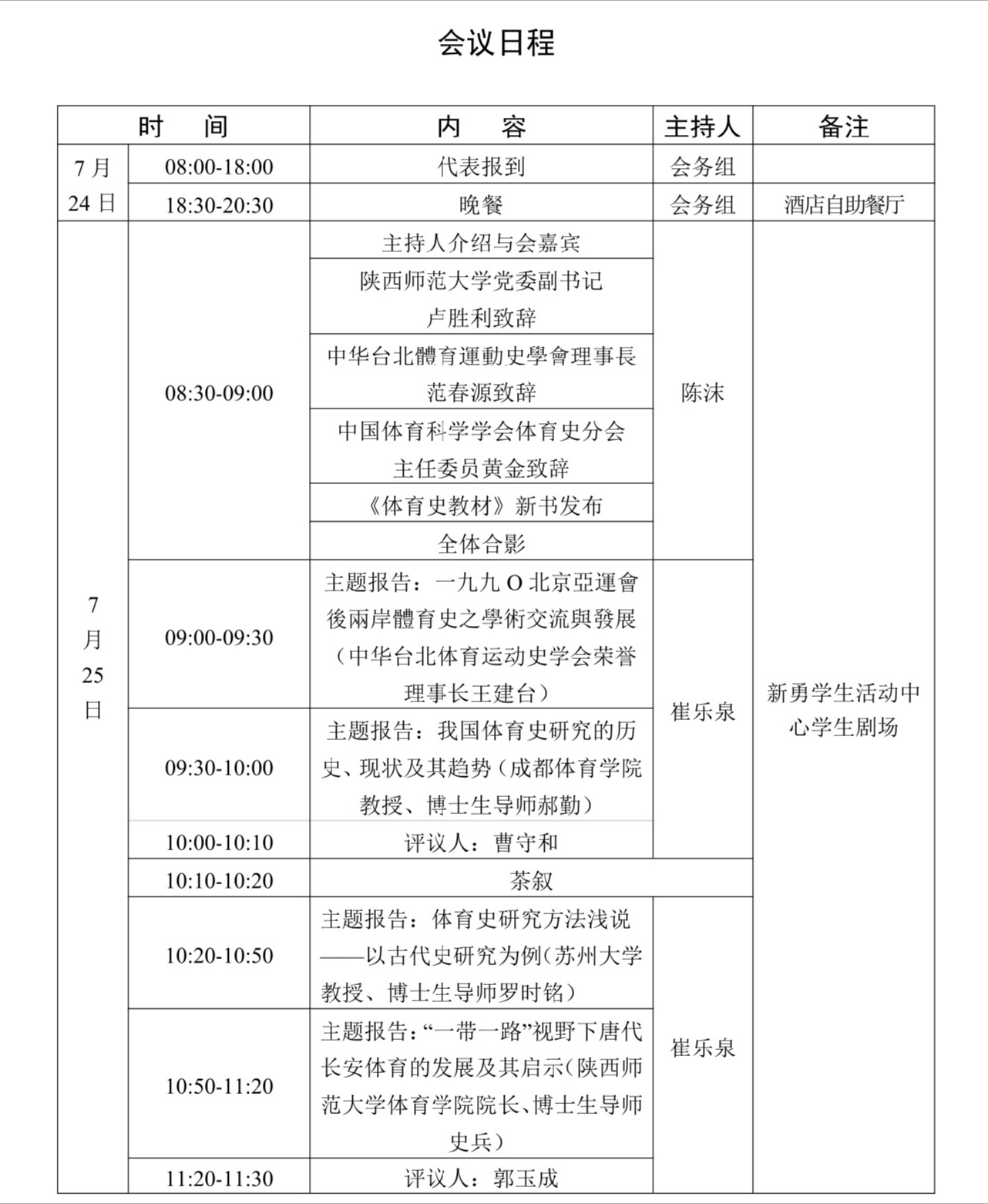 由中国体育科学学会体育史分会主办,beat365承办的第四届海峡两岸体育运动史学术研讨会定于7月24日-27日在长安校区举行。海峡两岸体育运动史学术研讨会由中国体育科学学会体育史分会和中华台北体育运动史学会于2012年共同发起,两年一届,在海峡两岸轮流举办。