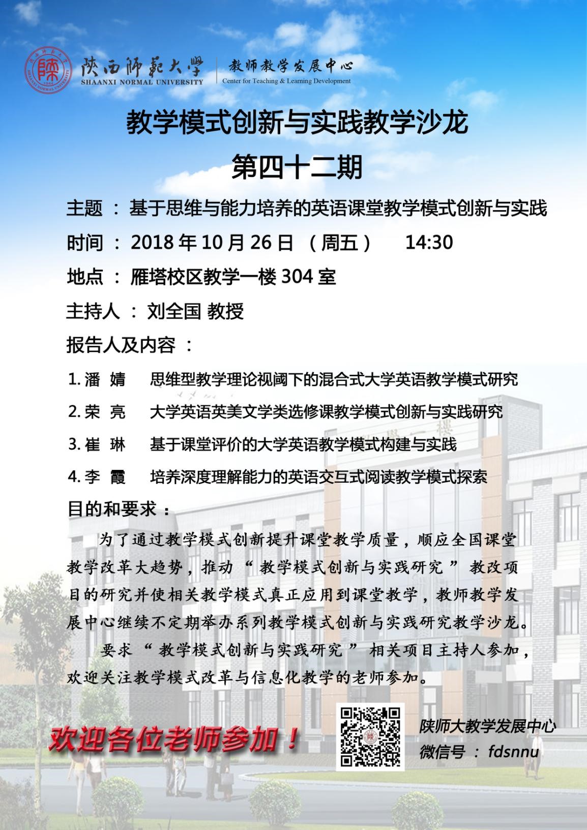 教学模式创新与实践教学沙龙第42期预告:基于思维与能力培养的英语课堂教学模式创新与实践