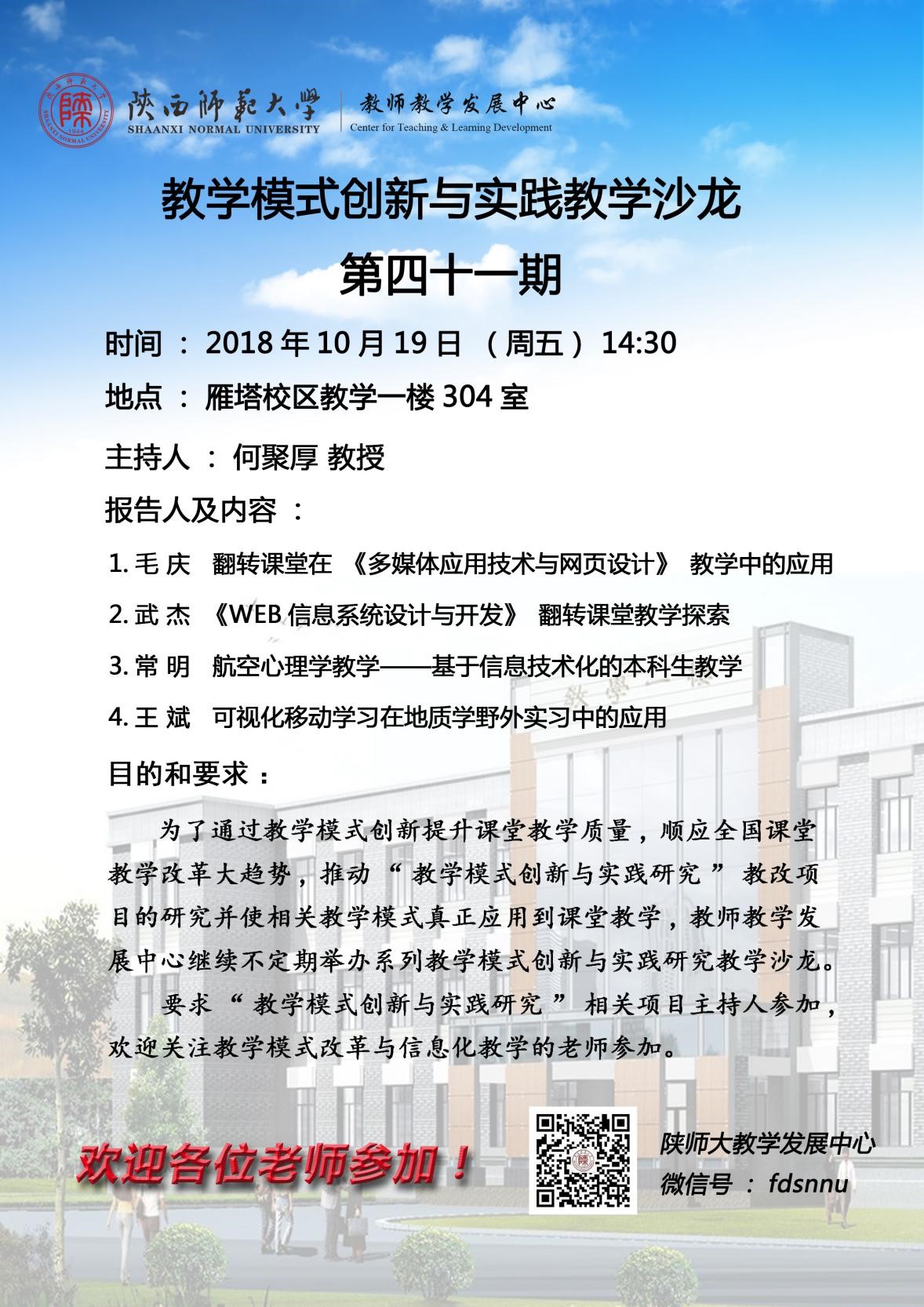 教学模式创新与实践教学沙龙第41期预告:基于现代信息技术的课堂教学模式创新与实践