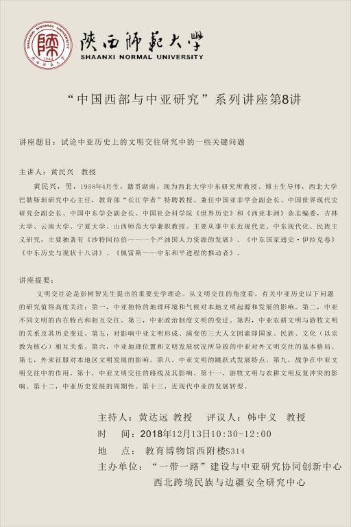 “中国西部与中亚研究”系列讲座第8讲