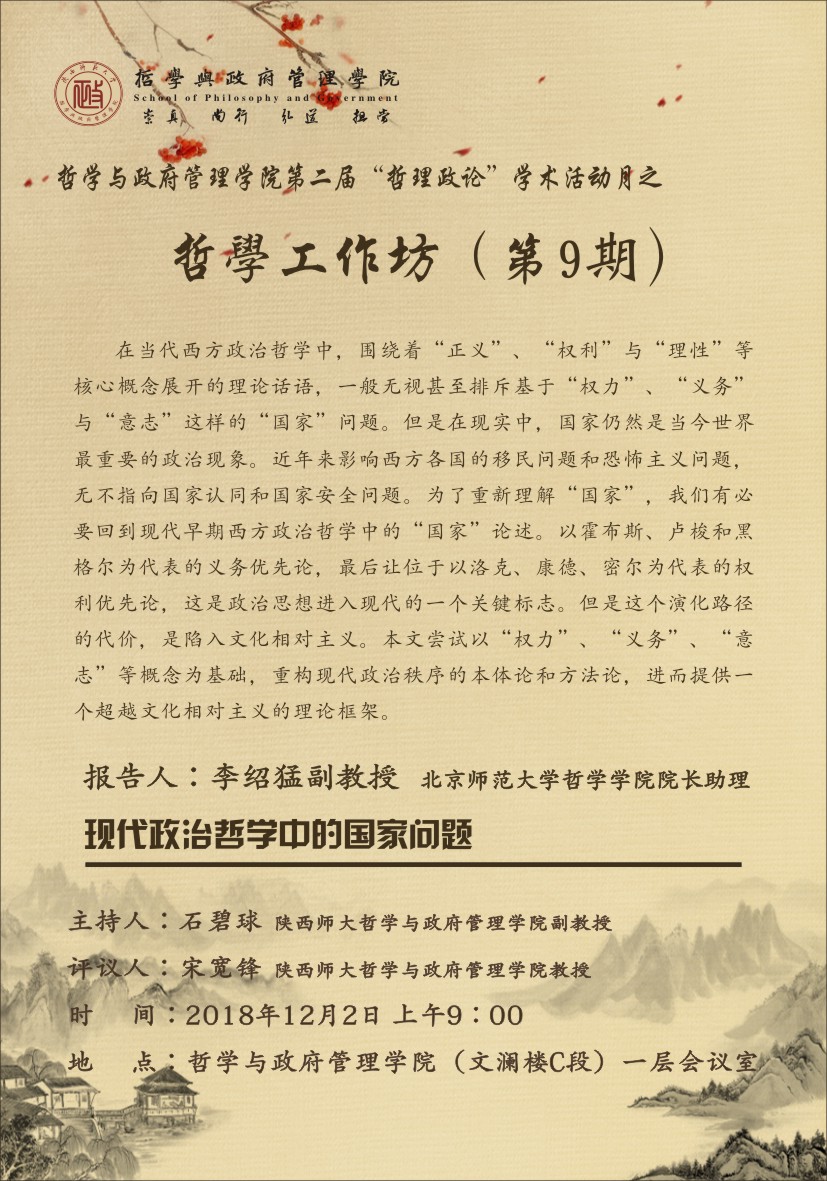 哲学与政府管理学院第二届“哲理政论”学术月之哲学工作坊(第9期)