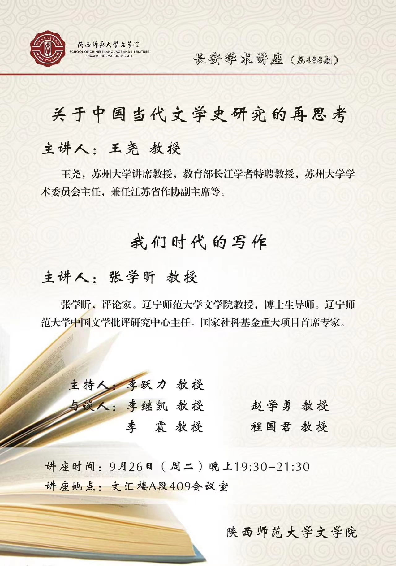 长安学术讲座(总488期):关于中国当代文学史研究的再思考、我们时代的写作
